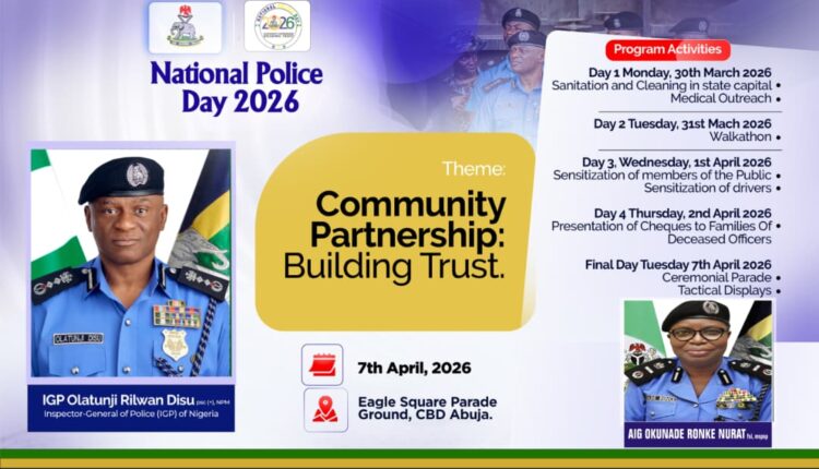The 2026 National Police Day would be celebrated between Monday, 30th March, 2026 and Tuesday, 7th April, 2026 across the federation. Its theme is “Community Partnership: Building Trust,” underscores the critical role of collaboration between the Police and the public in fostering a safe, secure, and prosperous society.